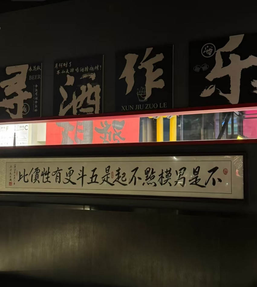 比如同樣開在廣州的五斗先生烤肉店,就因?yàn)樽尭哳佒的械陠T在顧客餐桌前現(xiàn)場烤肉而備受追捧。據(jù)網(wǎng)友介紹,烤肉過程中,服務(wù)員還會(huì)熱情陪聊,“不會(huì)讓話掉地上”。門店還和消費(fèi)者一起“玩!,店內(nèi)掛著一幅書法作品:“不是男模點(diǎn)不起,而是五斗更有性價(jià)比”。