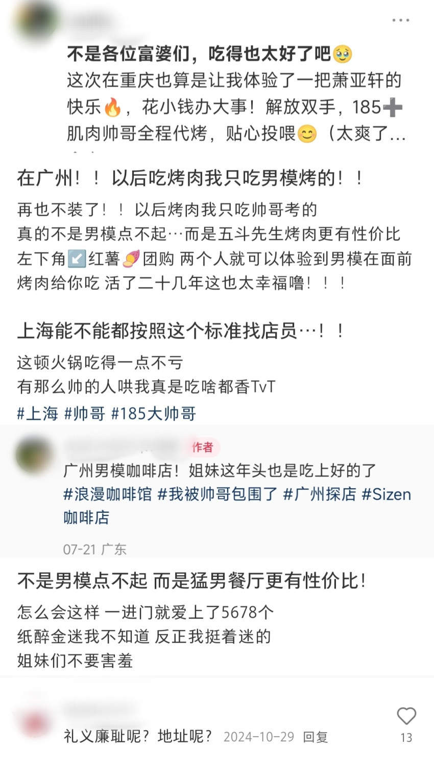△網(wǎng)友們對(duì)“男模餐廳”的看法,圖片來源:小紅書截圖