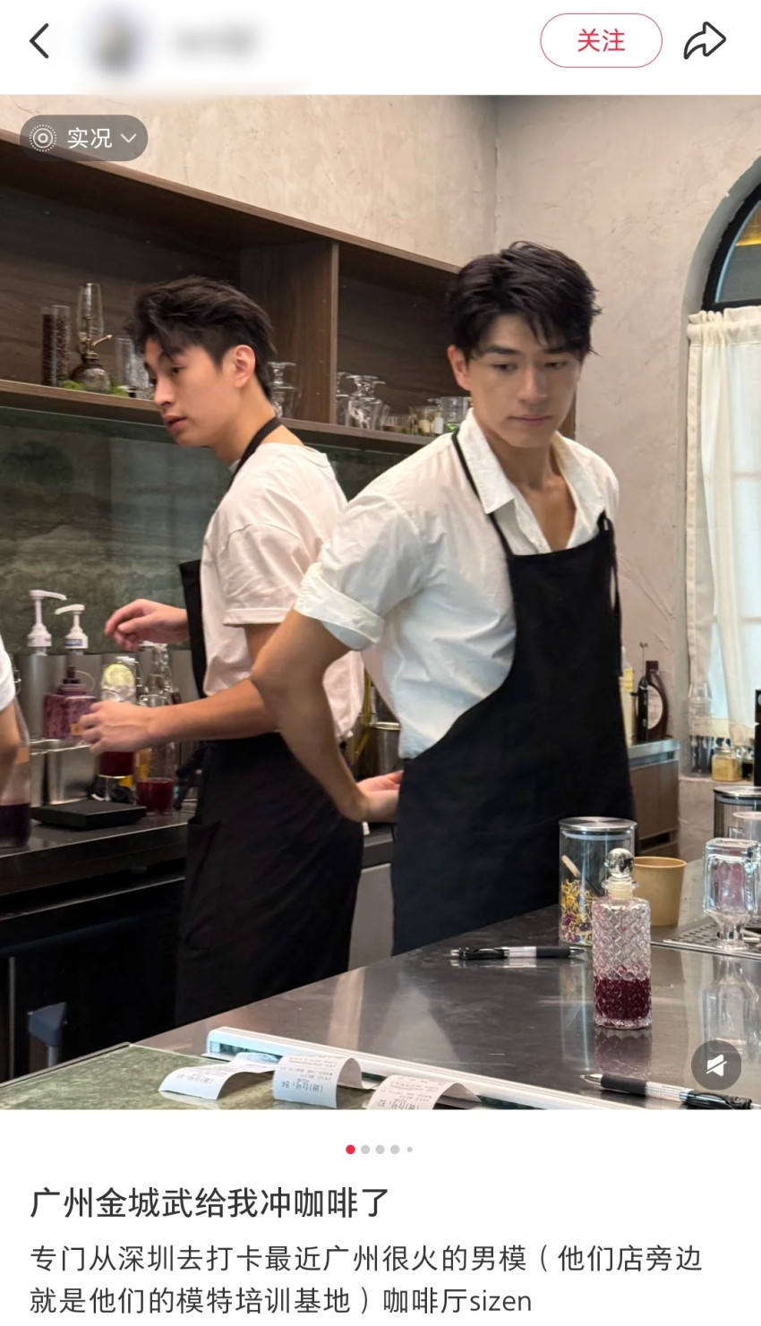 比如在廣州沙園,就有一家名為SIZEN的咖啡店,被網(wǎng)友戲稱為“5A帥哥風(fēng)景區(qū)”。據(jù)網(wǎng)友分享,這家咖啡店充斥著“廣州金城武”“沙園許光漢”等眾多男模級(jí)服務(wù)員。這些店員一邊做咖啡,一邊積極配合消費(fèi)者拍照。不少消費(fèi)者表示,花幾十塊錢既能喝到飲料,又能欣賞到帥哥,簡直是情緒價(jià)值拉滿。