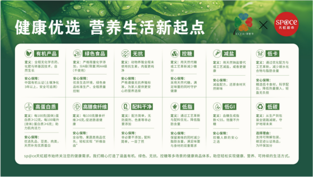 今天,零售企業(yè)對(duì)“真健康”要形成明確的范疇和定義。在sp@ce天虹超市,則為“健康消費(fèi)”定義了13種標(biāo)簽,值得全行業(yè)學(xué)習(xí)和參照。