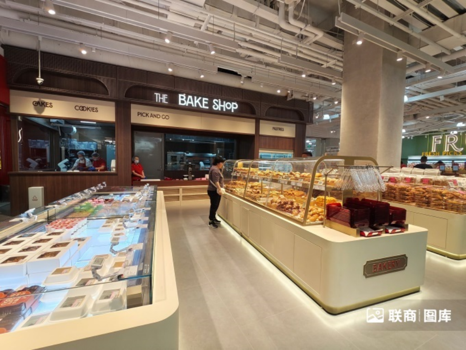 門店將后廚的加工過程“搬到”了臺前,烘焙區(qū)的面包制作、水產(chǎn)區(qū)的鮮魚加工、肉食區(qū)的肉類分割處理等,都以“美食劇場”的形式向顧客開放展示,讓食材新鮮看得見。