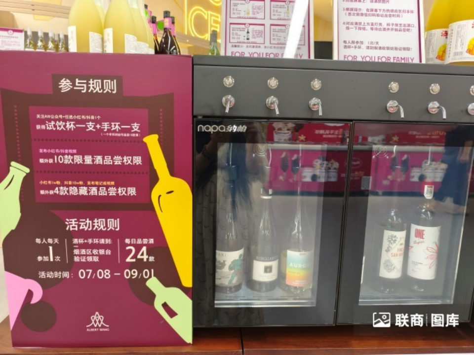AW超市還是國內(nèi)首家配備自助紅酒品鑒機的超市,顧客可限時免費品嘗20余款精選酒品,享受“即飲即選”的沉浸式體驗。