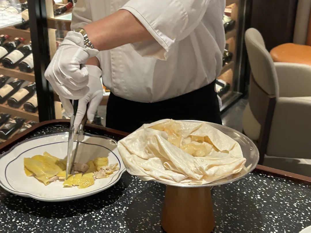 菜品上,不僅有多種高檔海鮮、和牛、深海鯛魚等高端食材,還有撈汁花甲、順德?lián)启~皮、鹽焗鳳等頗具特色的菜品。而且,每道產(chǎn)品的擺盤與餐具都經(jīng)過(guò)特別設(shè)計(jì),十分精致。