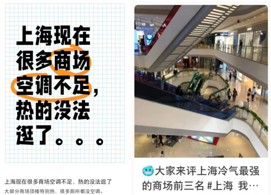 對購物中心溫度的討論 | 來源:小紅書