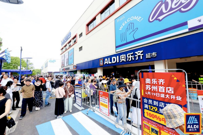今年5月,奧樂齊昆山首店開業(yè)當(dāng)日,客流突破10萬人次,單日銷售額高達(dá)110萬元。奧樂齊依托百年供應(yīng)鏈優(yōu)勢,標(biāo)價9.9元及以下低價產(chǎn)品超500個,五常大米、堅果等成為核心單品。其中國門店雖僅76家,但采購體系使其具備強(qiáng)價格穿透力。