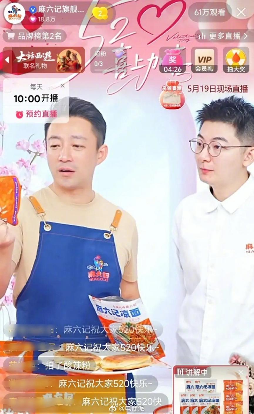 48小時內(nèi),麻六記啟動了“千店直播計劃”,讓全國各店的麻六記員工上陣直播,進(jìn)行“矩陣式”直播帶貨。