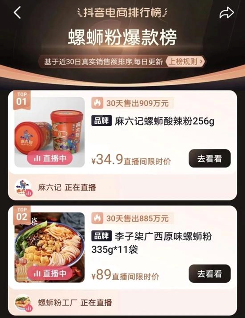 那之后,張?zhí)m通過在直播間持續(xù)制造爭議話題,比如家庭矛盾、大S去世等事,來帶動麻六記產(chǎn)品的線上銷售,麻六記酸辣粉、螺螄粉等產(chǎn)品由此頻頻被推到抖音食品飲料爆款榜首。