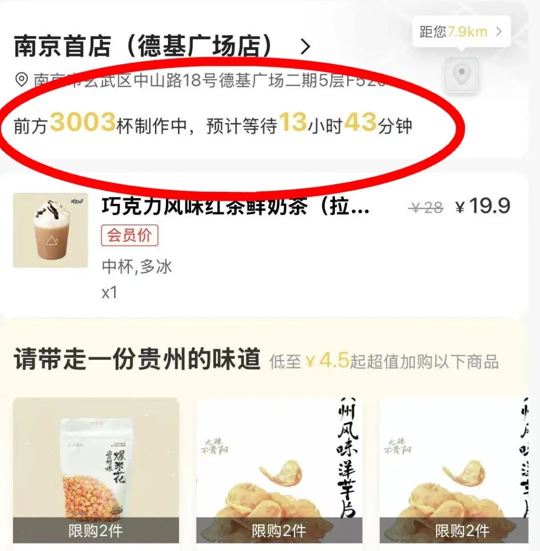 6月底,去茶山的杭州首店創(chuàng)下單店一天排隊(duì)超3000杯的紀(jì)錄,火爆到消費(fèi)者排隊(duì)時(shí)長(zhǎng)超過(guò)13個(gè)小時(shí)。