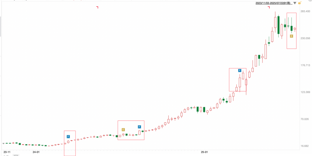 復(fù)盤泡泡瑪特2024年以來的行情,其股價暴漲的月份往往在財報發(fā)布的當(dāng)月,如2024年3月和8月,2025年3月等,符合業(yè)績—股價的傳導(dǎo)趨勢。但是,本次泡泡瑪特發(fā)布了上市以來的最強業(yè)績,公司股價反而開始回調(diào),頗像A股市場“利好出盡”的風(fēng)格。