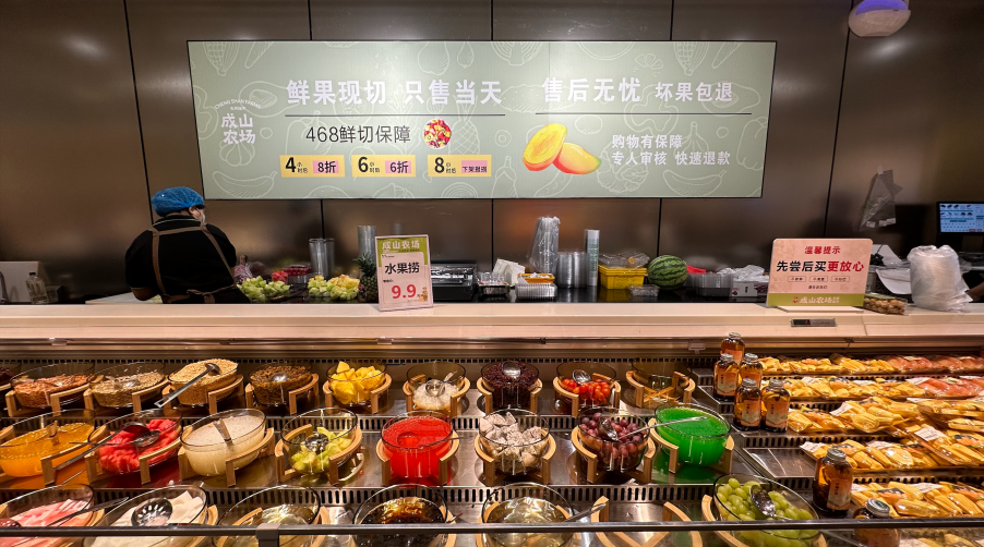 過去我們做生意,只專注于擅長的水果蔬菜肉,其他品類多交由他人經(jīng)營;現(xiàn)在則完全不同,所有板塊都要自營掌控,只有把主動權(quán)握在自己手里,才能真正實現(xiàn)靈活調(diào)整和品質(zhì)把控。