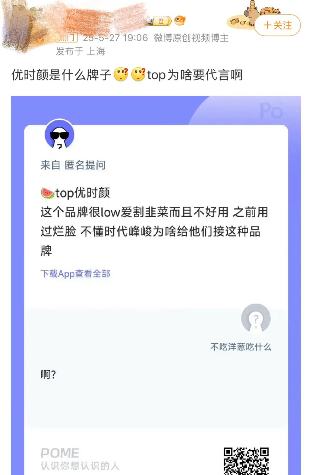 7月21日,UNISKIN優(yōu)時(shí)顏官宣TOP登陸少年團(tuán)為黑引力系列代言人,品牌官方微博的公告帖文下評(píng)論數(shù)達(dá)1.2萬(wàn),點(diǎn)贊量更是突破26.3萬(wàn)。但在微博搜索“優(yōu)時(shí)顏 TOP”的關(guān)鍵詞時(shí),同樣也出現(xiàn)了“不同意代言”“雜牌”等言論。