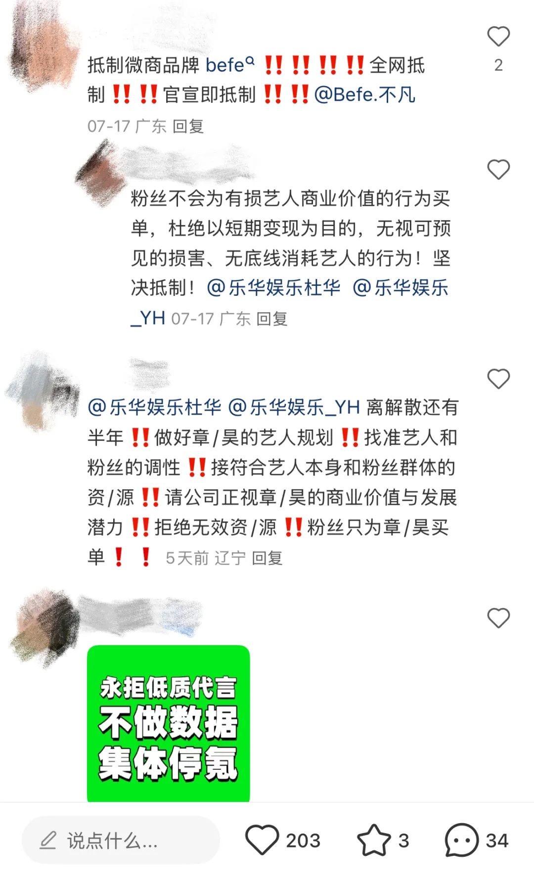 據(jù)了解,Befe不凡在7月24日官宣藝人章昊為其首位干發(fā)噴霧系列代言人,但在這之后,卻遭到了藝人部分粉絲在社交平臺(tái)的抵制。