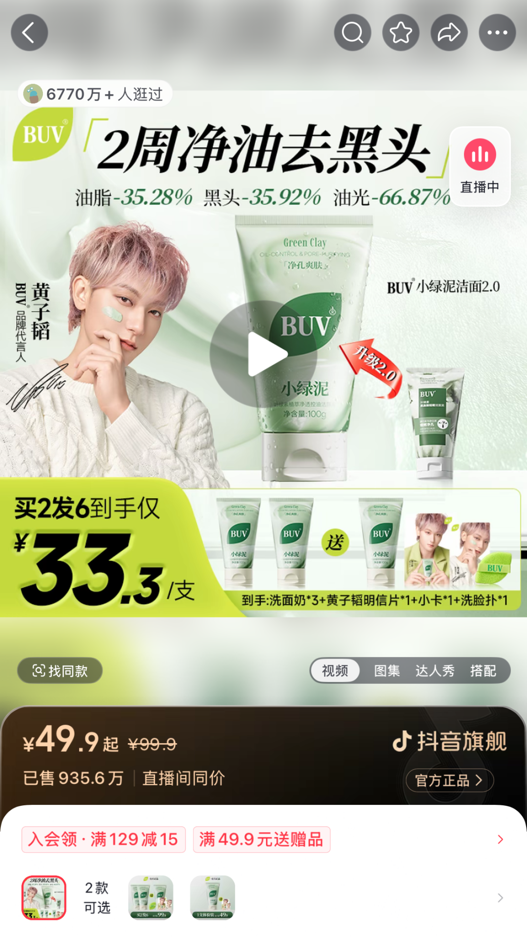 BUV請(qǐng)到黃子韜為其代言,通過(guò)購(gòu)買(mǎi)產(chǎn)品贈(zèng)送限定小卡、參與活動(dòng)抽取親筆簽名等方式,激起粉絲們的購(gòu)買(mǎi)熱情,并自發(fā)在各大社交平臺(tái)宣傳相關(guān)產(chǎn)品。據(jù)搜索,目前在小紅書(shū)上的“黃子韜buv全球品牌代言人”詞條瀏覽量已達(dá)43萬(wàn)+,抖音店鋪BUV官方旗艦店售賣(mài)的【黃子韜代言】BUV綠泥洗面奶目前顯示已售935.6萬(wàn)。