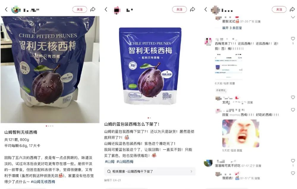 從社交平臺(tái)信息來(lái)看,2024年2月前后,有網(wǎng)友發(fā)現(xiàn)“Prunella”不再出現(xiàn)在山姆貨架上,轉(zhuǎn)而出現(xiàn)的是“MRDONNY 智利無(wú)核西梅”。