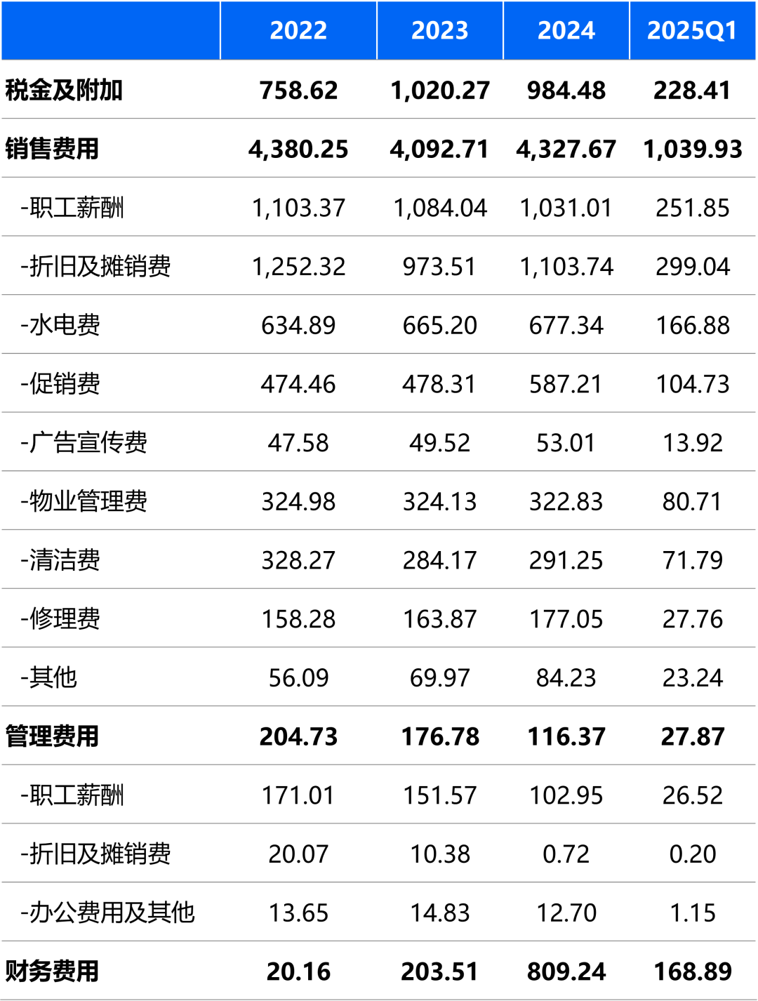 目前看來,受到競品開業(yè)的沖擊影響,項目2024年總銷售額也低于2023年。并且從2025年Q1創(chuàng)了近3期新高的租售比來看,今年一季度的營業(yè)額也沒有出現(xiàn)明顯的逆勢變化。