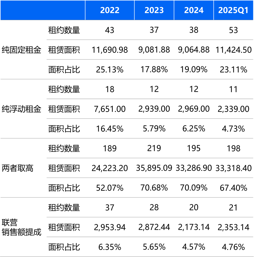 通常來說,這個面積段的品牌,除了那些能級特別高、影響力特別大的之外,商場多數(shù)都會選擇采用兩者取高的模式進行合作。以(低于過往平均租金的)純固租模式進行合作,還是比較明顯地體現(xiàn)出了“以價換量”的租賃策略。