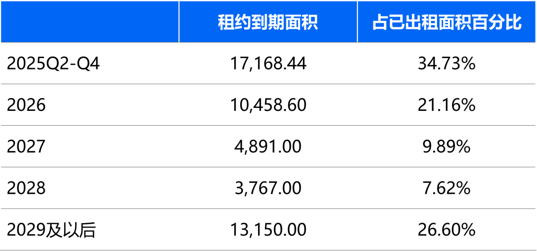 專門店極短的WALE值值得關(guān)注,尤其項目有高達34.73%的面積將在今年到期。