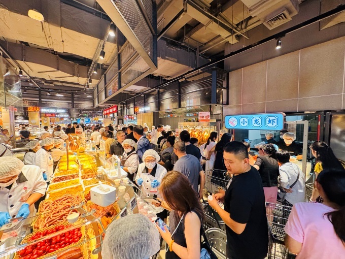 熟食區(qū)煙火氣十足,不僅匯集了胖東來(lái)同款豬蹄、小甜腸、炸雞,還有門店現(xiàn)烤烤鴨、手工鮮包、現(xiàn)制豆?jié){豆腐、多口味小龍蝦、特色拌菜、撈汁小海鮮等,也深度融入本地特色,保留并強(qiáng)化了方肉、碗坨等本地特色,滿足家庭餐桌的便捷與多樣性需求。