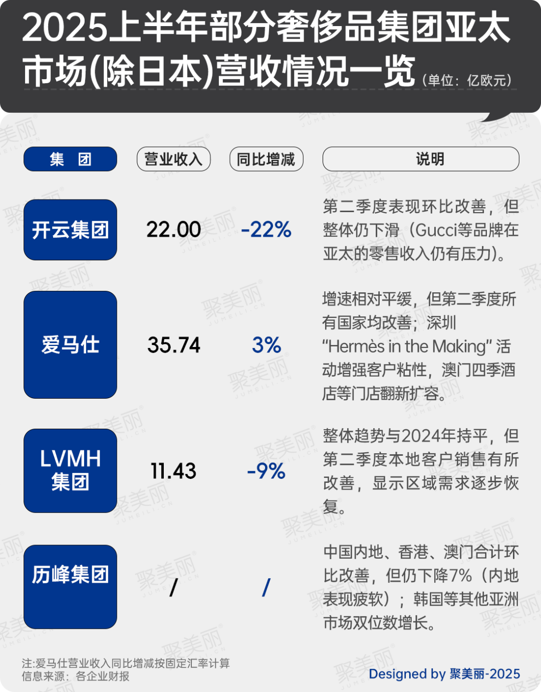 另外,聚美麗在梳理今年上半年各大奢侈品集團最新的財報業(yè)績時,發(fā)現(xiàn)還有以下信息值得關(guān)注: