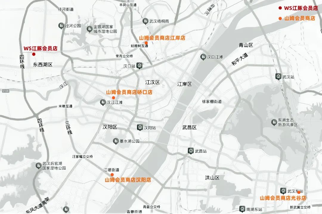○WS江豚會(huì)員店及山姆會(huì)員商店在武漢的門店分布