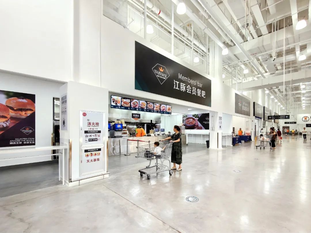 山姆會(huì)員商店深入人心的試吃服務(wù)、自助打包臺(tái)及取冰處、餐吧、母嬰室、寵物寄存區(qū)、免費(fèi)測(cè)血壓與視力等,以及配兒童安全帶的購(gòu)物手推車(分無(wú)安全帶的普通版及帶安全帶的幼兒版),WS江豚會(huì)員店都全盤引入。