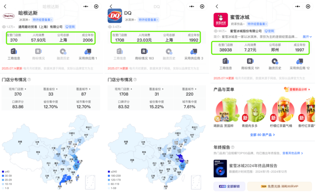 圖:哈根達斯、DQ、蜜雪冰城對比