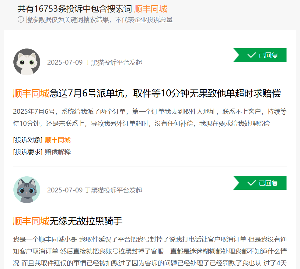 她的疑惑并非個例,在社交媒體和投訴平臺上,越來越多用戶開始質(zhì)疑:支付給順豐同城的品牌溢價,是否傳導(dǎo)給到騎手,真的換來了與之匹配的服務(wù)升級?