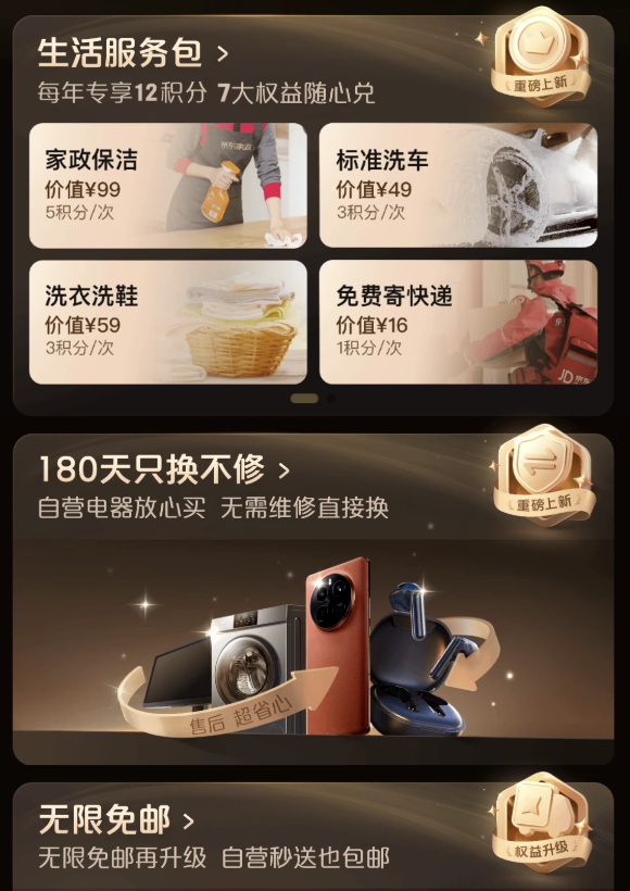同時(shí),京東還新增了“180天只換不修”權(quán)益,會(huì)員購(gòu)買(mǎi)手機(jī)、家電、數(shù)碼、電腦等自營(yíng)電器,可享受180天內(nèi)有質(zhì)量問(wèn)題直接換新。此外,“無(wú)限免郵”服務(wù)范圍進(jìn)一步擴(kuò)展至自營(yíng)秒送業(yè)務(wù)。