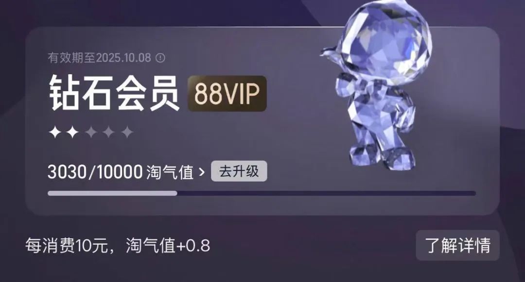 淘寶或許想要培養(yǎng)一種消費心態(tài):從鉑金普通會員到88VIP會員之間的距離只有88元錢。