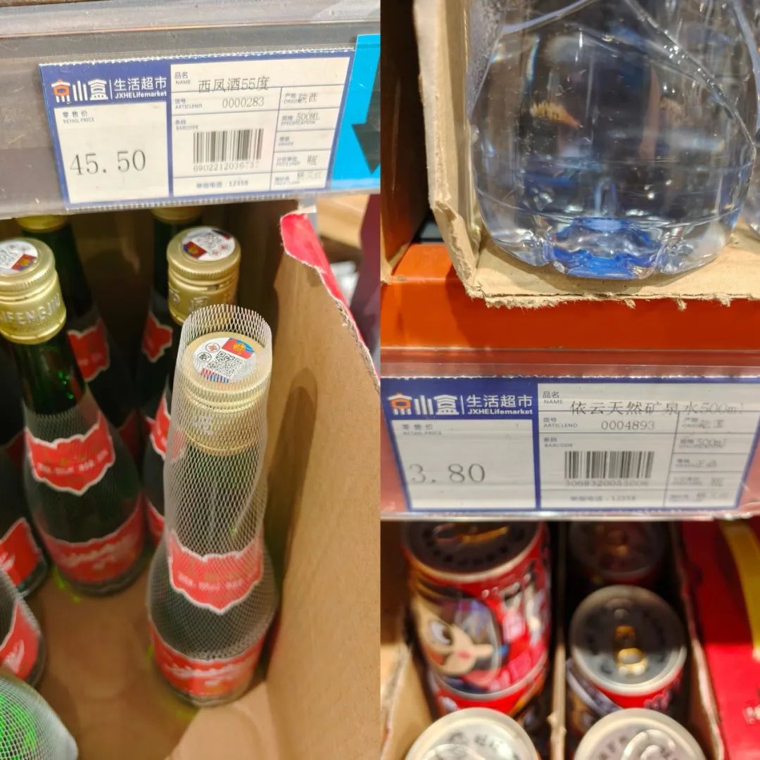 部分標(biāo)品的價(jià)格也同樣具有競(jìng)爭(zhēng)力。如京小盒依云礦泉水500ml售價(jià)3.8元,同款商品在部分超市便利店的售價(jià)約5-6元;京小盒的55度綠瓶西鳳酒500ml售價(jià)45.5元,同款商品在西安盒馬售價(jià)50元;京小盒的恒順香醋500ml售價(jià)5.3元,而西安永輝生活的恒順香醋(B香)500ml售價(jià)6.5元。