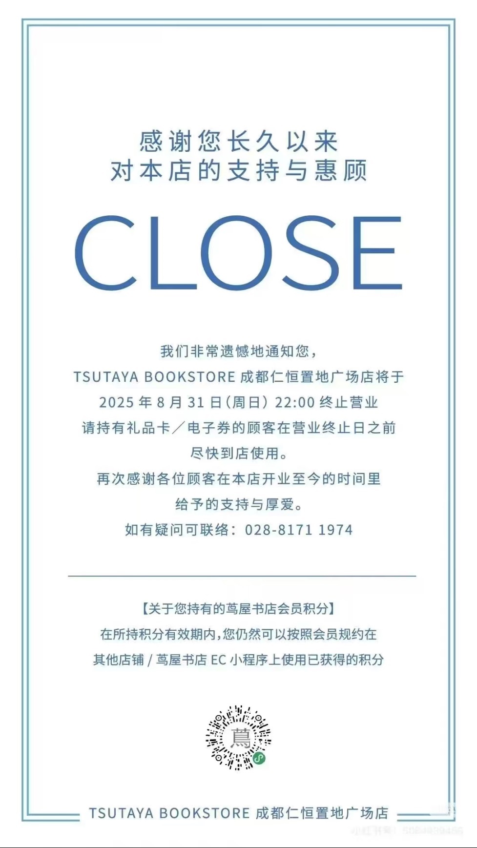 蔦屋書店成都仁恒置地廣場店即將關(guān)閉