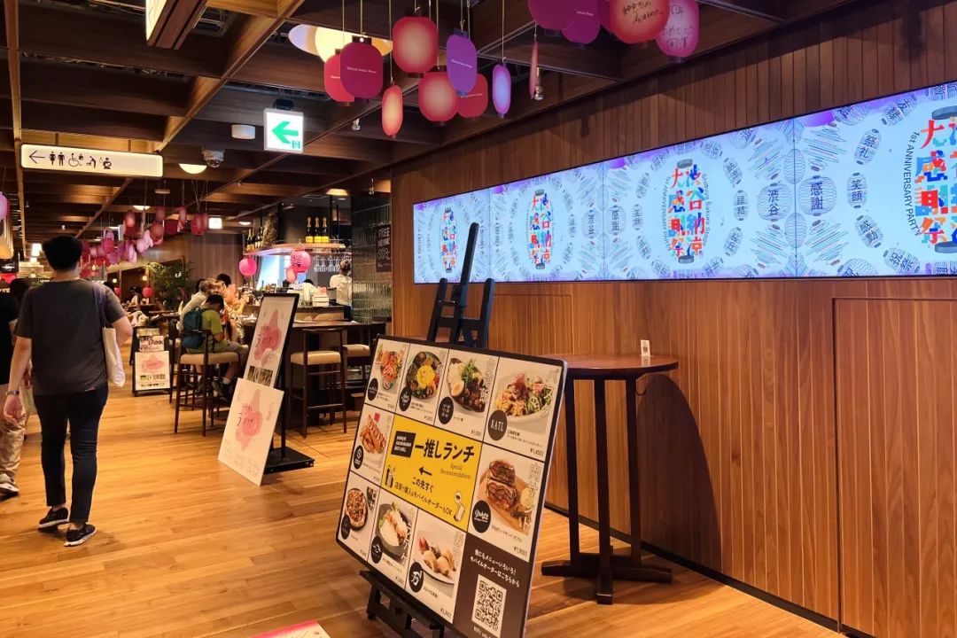 除此之外,作為項(xiàng)目中最為特色化的場(chǎng)景之一,4層的另一半空間呈現(xiàn)的則是融合了櫻丘商店街獨(dú)特風(fēng)格的美食廣場(chǎng)“FOOD MET”。以日本傳統(tǒng)商店街為靈感,這里共聚集了7家美食店鋪,包含了日式烤肉YAKINIKU78、壽司餐廳Sushi Soul、推廣千葉本地食材的JUICCCY等特色品牌。