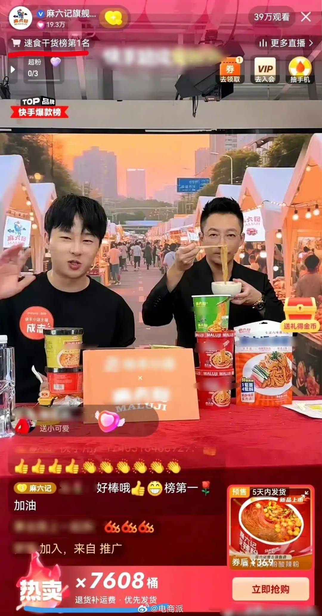 汪小菲這邊,也沒有停下直播的步伐。2月26日晚,汪小菲現(xiàn)身麻六記旗艦店快手直播間。而汪小菲的到來,也為直播間帶來了一大波流量,直播觀看人數(shù)一度高達171萬,而該直播間也拿下了品牌榜第一名。