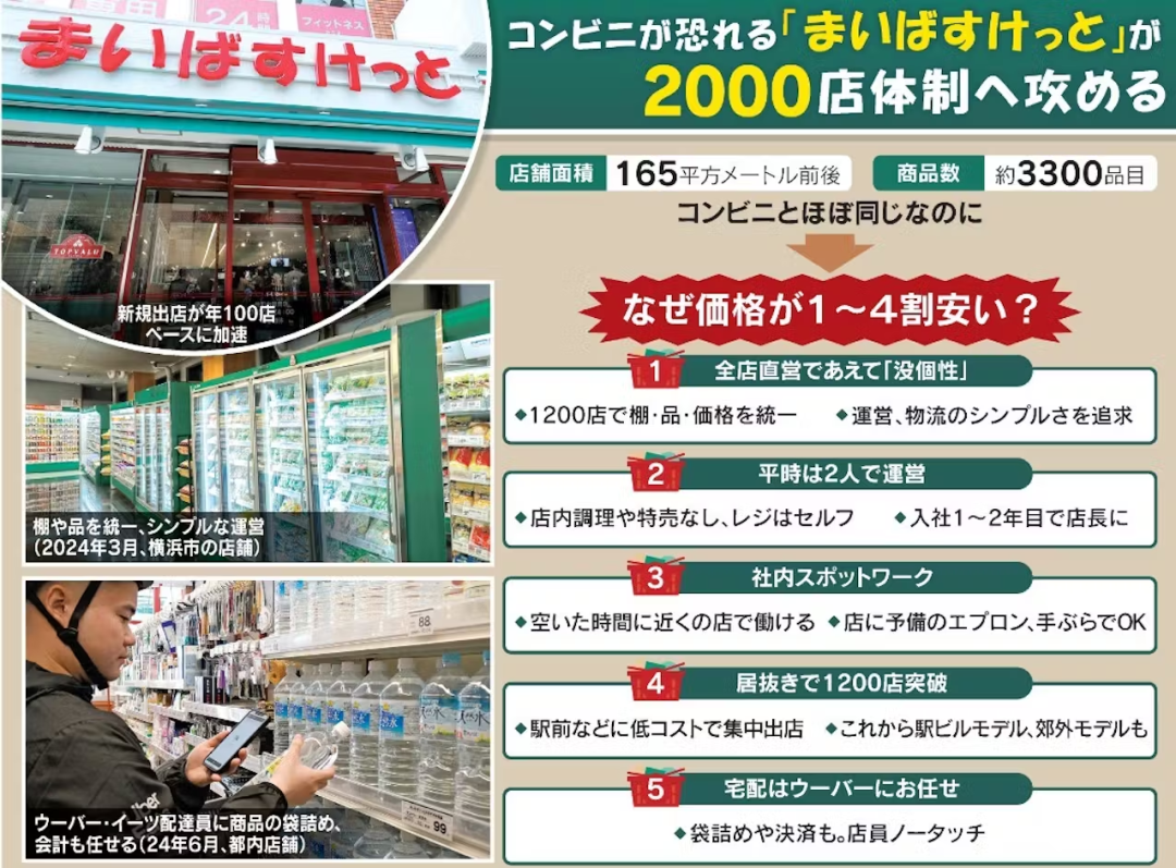 永旺社長吉田昭夫在今年四月的財(cái)報(bào)發(fā)布會(huì)上透露,My Basket目前約有1200家門店,計(jì)劃到2030年增至2500家,未來目標(biāo)是5000家門店。