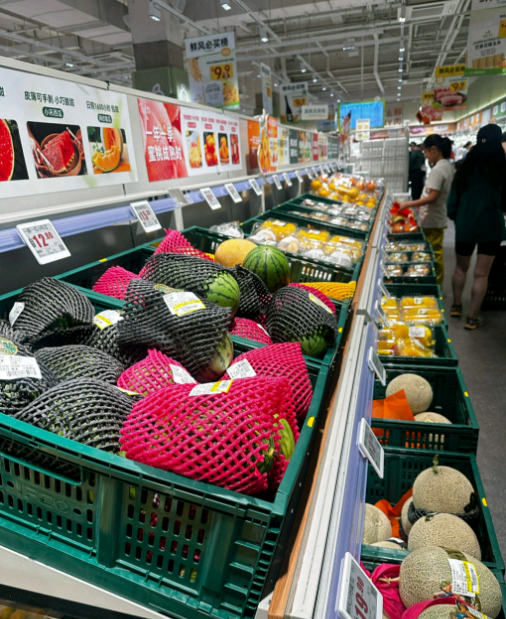 在陳列方式上,倉儲式陳列讓購物體驗變得更高效。不同于傳統(tǒng)超市復雜的分區(qū),社區(qū)店的貨架排列筆直有序,通道寬敞,每個區(qū)域都有醒目的指引牌。生鮮區(qū)采用開放式冷柜,蔬菜按顏色分類擺放,水果按成熟度梯度陳列;食品區(qū)按場景化分類,居民想買什么食材,能快速找到對應的區(qū)域。這種直觀的陳列方式不僅節(jié)省了消費者的購物時間,還營造出一種商品豐富、價格實在的氛圍,讓居民感覺“像在倉庫里淘寶,總能撿到實惠”。