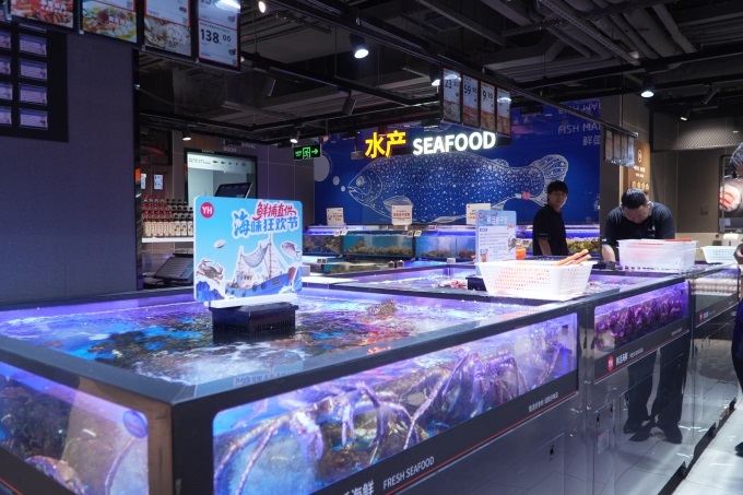 細(xì)節(jié)處的關(guān)懷更顯貼心,調(diào)味品等柜臺(tái)特意增設(shè)放大鏡,方便老年客群查看商品信息;肉禽柜臺(tái)提供切絲、切片、絞肉等定制化加工服務(wù);海鮮區(qū)支持清洗、打氧、刨魚切片等全流程處理。此外,店內(nèi)精心設(shè)置試穿拖鞋專用鞋套與鞋凳,以及剖魚間、易碎品打包處、海鮮打包加冰處等功能區(qū),從細(xì)微處彰顯人性化關(guān)懷,滿足顧客多樣化需求。
