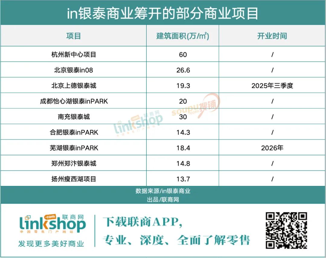 截至去年底,in銀泰商業(yè)全國在管項目32個,總建筑面積475萬㎡。其中籌備中的有杭州新中心項目、北京銀泰in08、北京上德銀泰城、合肥銀泰inPARK、蕪湖銀泰inPARK、鄭州鄭汴銀泰城、成都怡心湖銀泰inPARK等9個商業(yè)項目。
