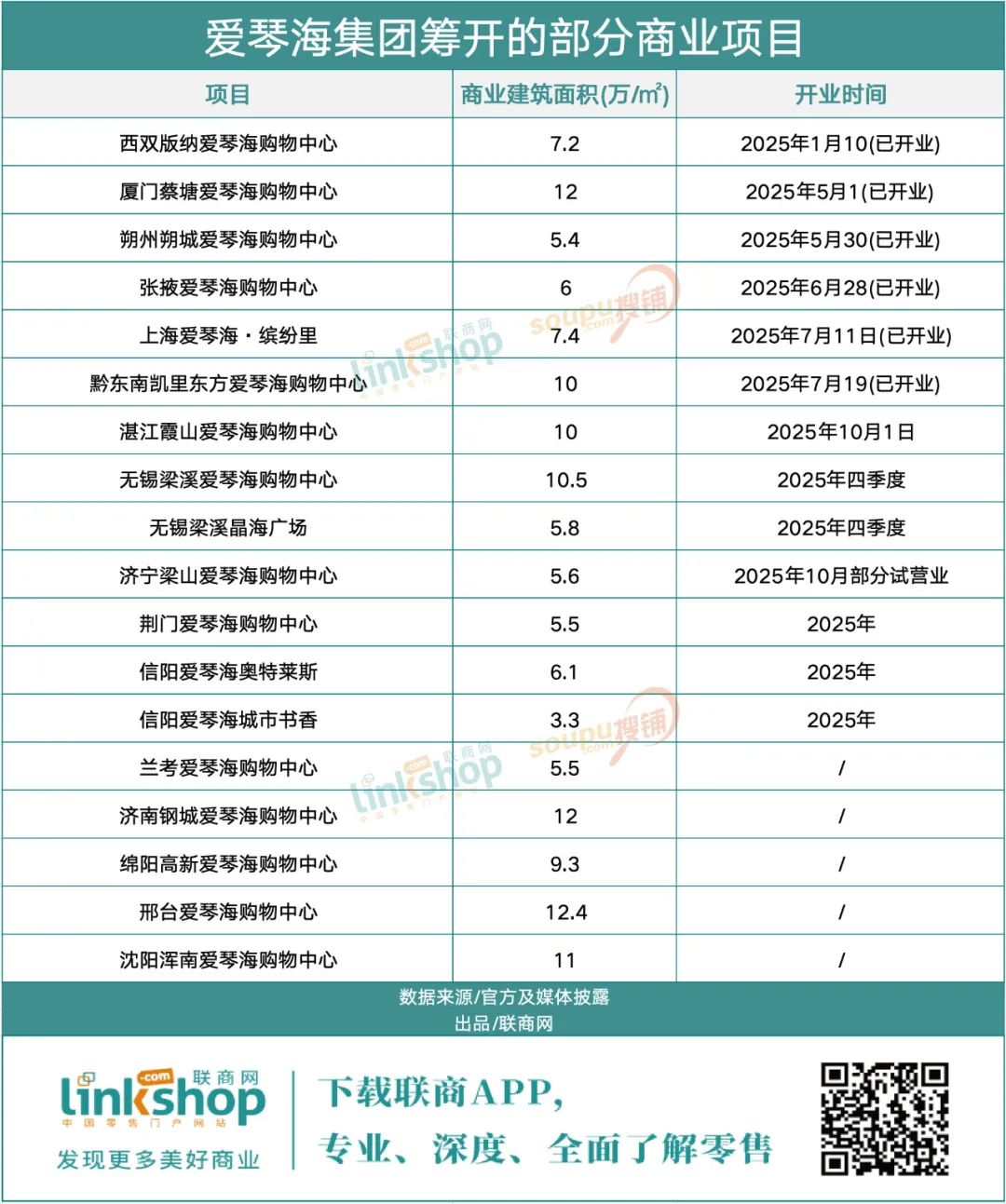 作為專業(yè)的資產(chǎn)管理運營平臺,愛琴海集團將為更多的資產(chǎn)方提供全流程服務(wù)及定制化的資產(chǎn)解決方案。據(jù)聯(lián)商網(wǎng)不完全統(tǒng)計,愛琴海集團2025年及以后籌開的商業(yè)項目達(dá)18個。