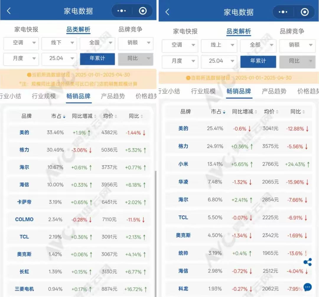 業(yè)務(wù)板塊上,海爾亦存在需要突破的賽道,以家電中的核心品類(lèi)空調(diào)為例,一季度海爾目前在國(guó)內(nèi)空調(diào)領(lǐng)域份額19.2%,而來(lái)自?shī)W維云網(wǎng)數(shù)據(jù)顯示,2025年1—4月,空調(diào)市場(chǎng)市占率線下渠道,前五名分別是美的、格力、海爾、海信和卡薩帝,如此看來(lái),海爾品牌與均自稱自身為行業(yè)第一的格力、美的有一定差距,需加強(qiáng)產(chǎn)品競(jìng)爭(zhēng)力。