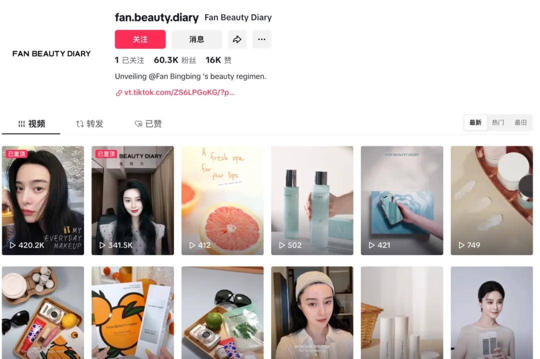 《當代企業(yè)》發(fā)現(xiàn),目前Fan Beauty在TikTok上有超過6萬粉絲,范冰冰個人出鏡視頻有30萬至40多萬的播放,但普通的產(chǎn)品視頻則僅有數(shù)百播放。目前來看,海外消費者的關(guān)注度仍在明星本人身上,對品牌的關(guān)注度相對較低,品牌在海外并沒有激起太多水花。
