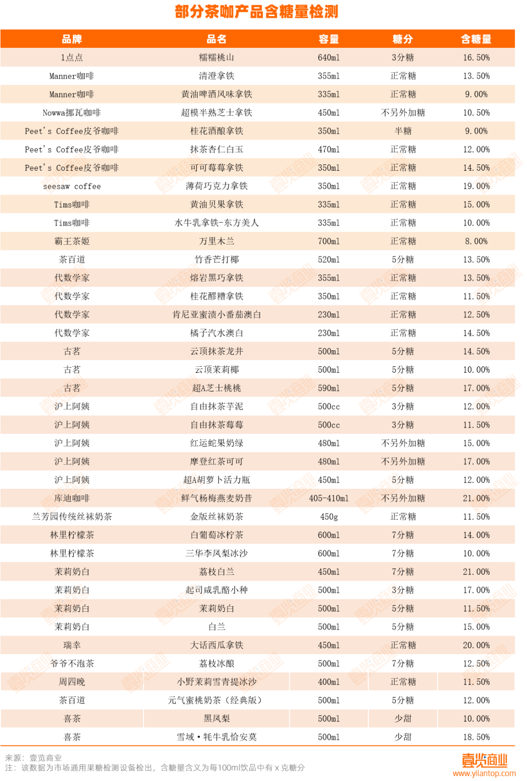 此前,茶咖觀察評測過超60款茶飲、咖啡,即便非全糖茶飲,平均含糖量也在12%左右(每100ml飲品含12g糖)。同時,不少品牌依舊依賴植脂末、代糖、調(diào)制乳中和口感,而相關的原料成分并不透明,消費者陷入“好喝不敢喝”困境。