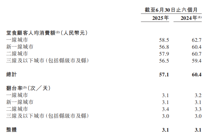 整體來看,小菜園的同店日均銷售額同比下降7.25%,截至2025年6月30日止六個(gè)月為2.46萬元。