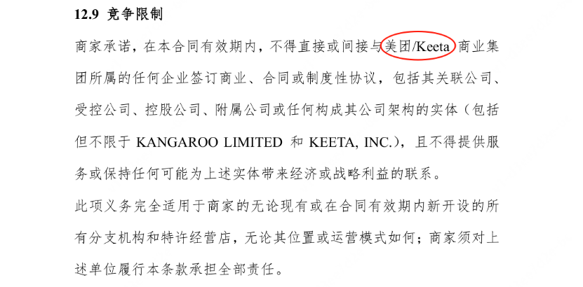 圖: 99Food與部分商戶簽訂的限制性協(xié)議部分內(nèi)容(附譯文);來(lái)源:極光新聞