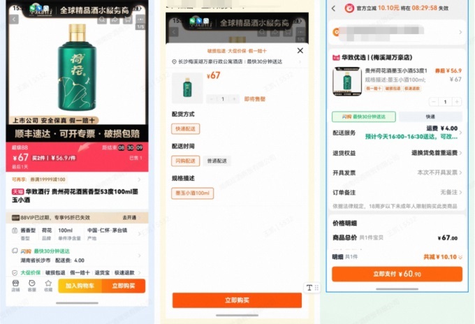 8月初,在淘寶天貓酒水行業(yè)的推動下,淘寶閃購和華致酒行達成合作,依托華致酒行天貓官方旗艦店,推出“遠近一體”服務(wù)模式,消費者從旗艦店下單后的正品酒水,能享受最快30分鐘送到家的服務(wù);顒悠陂g,來自長沙的小吳通過華致酒行天貓官方旗艦店購買了一瓶“農(nóng)莊世家”葡萄酒,選擇了華致優(yōu)選萬豪店進行履約配送,既能享受到線上優(yōu)惠的價格,還能享受30分鐘送到家的服務(wù)。