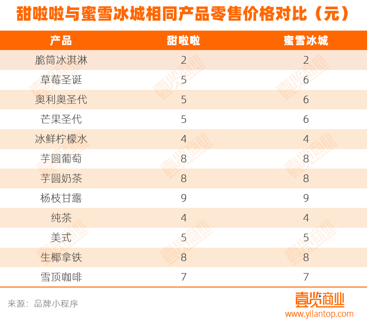 成本高企的同時(shí),甜啦啦的產(chǎn)品售價(jià)卻未形成優(yōu)勢。對比顯示,甜啦啦有12款產(chǎn)品與蜜雪冰城同質(zhì)同價(jià),甚至部分產(chǎn)品售價(jià)更低:草莓圣代、奧利奧圣代、芒果圣代售價(jià)5元,較蜜雪冰城低1元。