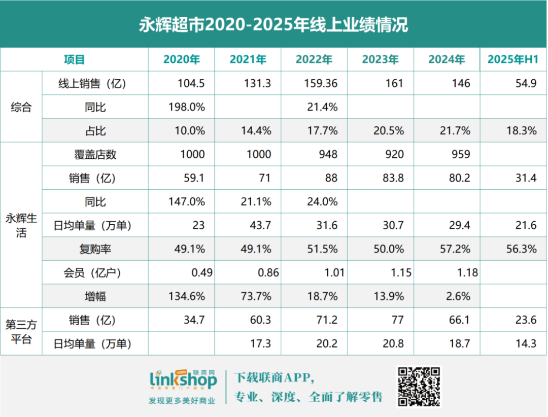 報(bào)告稱,上半年線上業(yè)務(wù)營(yíng)收54.9億元,占總營(yíng)收的18.33%,較去年同期減虧3475萬(wàn)元。其中“永輝線上超市”自營(yíng)到家業(yè)務(wù)實(shí)現(xiàn)銷售額31.4億元,日均單量21.6萬(wàn)單,月均次月復(fù)購(gòu)率達(dá)56.3%;第三方平臺(tái)到家業(yè)務(wù)銷售額23.6億元,日均單量14.3萬(wàn)單。