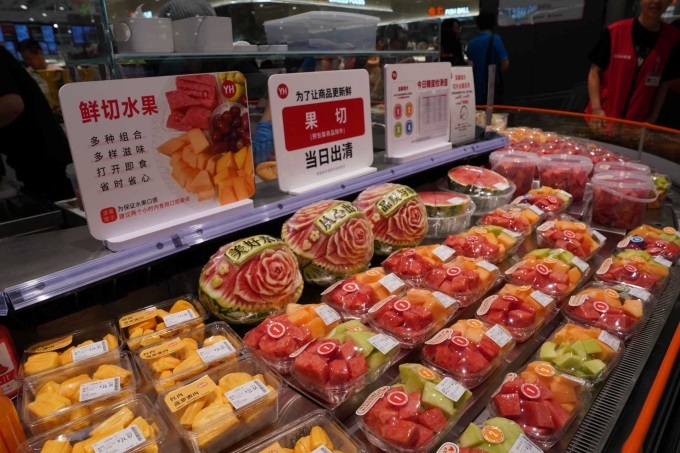 生鮮區(qū)域同樣精彩紛呈。水果區(qū)圍繞“優(yōu)質優(yōu)價·品項豐富”理念,精心布局了民生剛需、特色差異和年輕潮流三類商品。永輝不僅保留了共性精品,更強化了差異化選品。依托全國供應鏈優(yōu)勢,正值新疆瓜果豐產季的車厘子、甜度超20度的西梅、皮薄核小的“恐龍蛋”李子等特色果品,通過永輝極速冷鏈新鮮入永安,與升級版果切果汁、冷萃茶、水果撈等年輕化新品共同豐富選擇。應季爆品荔枝、藍莓、榴蓮與佳沛奇異果、精選莓果、高顏值番茄等構建吸睛商品矩陣。這精準覆蓋了永安以家庭消費為主,同時年輕消費群體需求增長的市場結構。