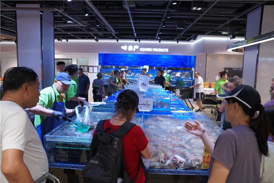 煥新開業(yè)的超市發(fā)雙榆樹店鮮活水產(chǎn)區(qū)面積擴(kuò)大一倍,淡水魚增至20種,海水產(chǎn)品種成為5公里內(nèi)最全;新增有機(jī)蔬菜系列(占比超30%),直采冬棗、空運(yùn)黃金西梅等時(shí)令鮮果;精細(xì)加工區(qū)推出鮮切牛羊肉片、手打丸子、鮮果切、煎烤涮等,滿足中高端需求。