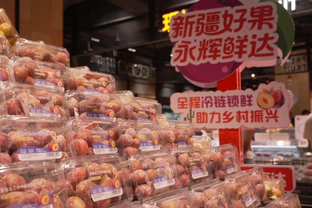 熟食與烘焙區(qū)現(xiàn)制商品比例顯著提升(如杭州店熟食SKU超200支、烘焙區(qū)引入商品90余支),推出韓式炸雞、榴蓮千層等爆款,并融入地域特色。時(shí)令商品方面,各店同步“新疆水果節(jié)”與“開海季”,直采新疆西梅、東海梭子蟹等爆品,通過(guò)冷鏈物流實(shí)現(xiàn)12小時(shí)鮮達(dá)。
