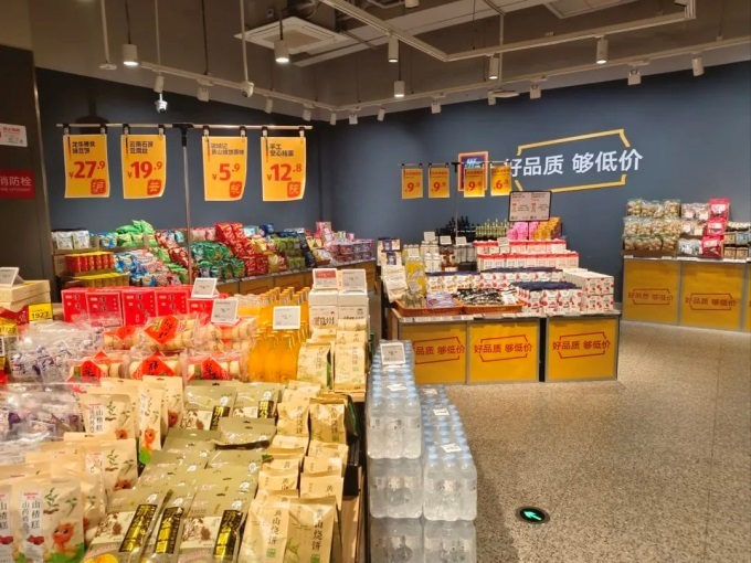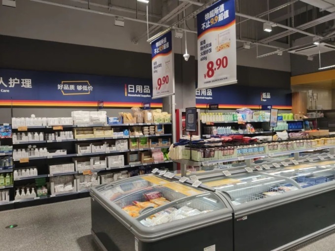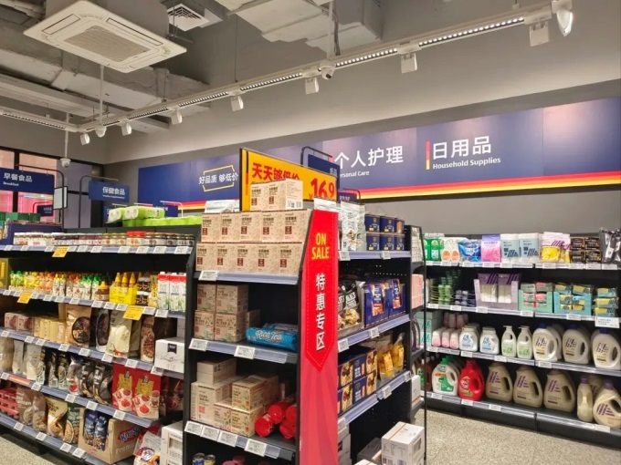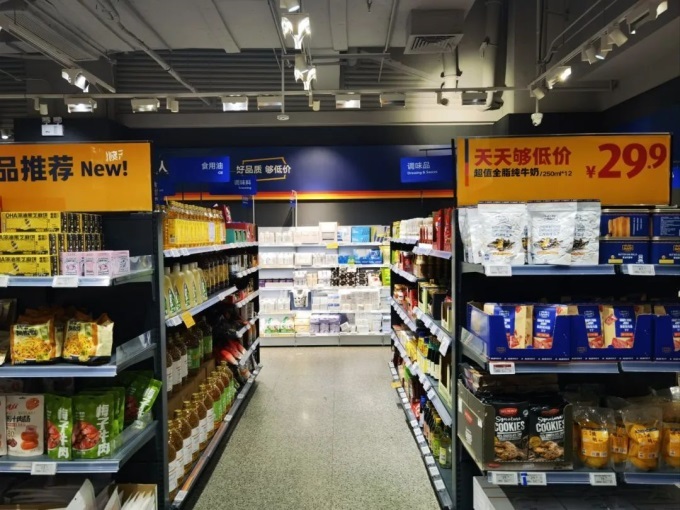 其中,姑蘇區(qū)世茂廣場店從進場施工到開業(yè)僅用3個月,該店延續(xù)標(biāo)志性的“精選SKU+自有品牌”策略,90%商品為13個自有品牌,覆蓋生鮮冷鏈、烘焙熟食、日用家居等品類,并針對中國家庭結(jié)構(gòu)特點,推出“小包裝也低價”模式。